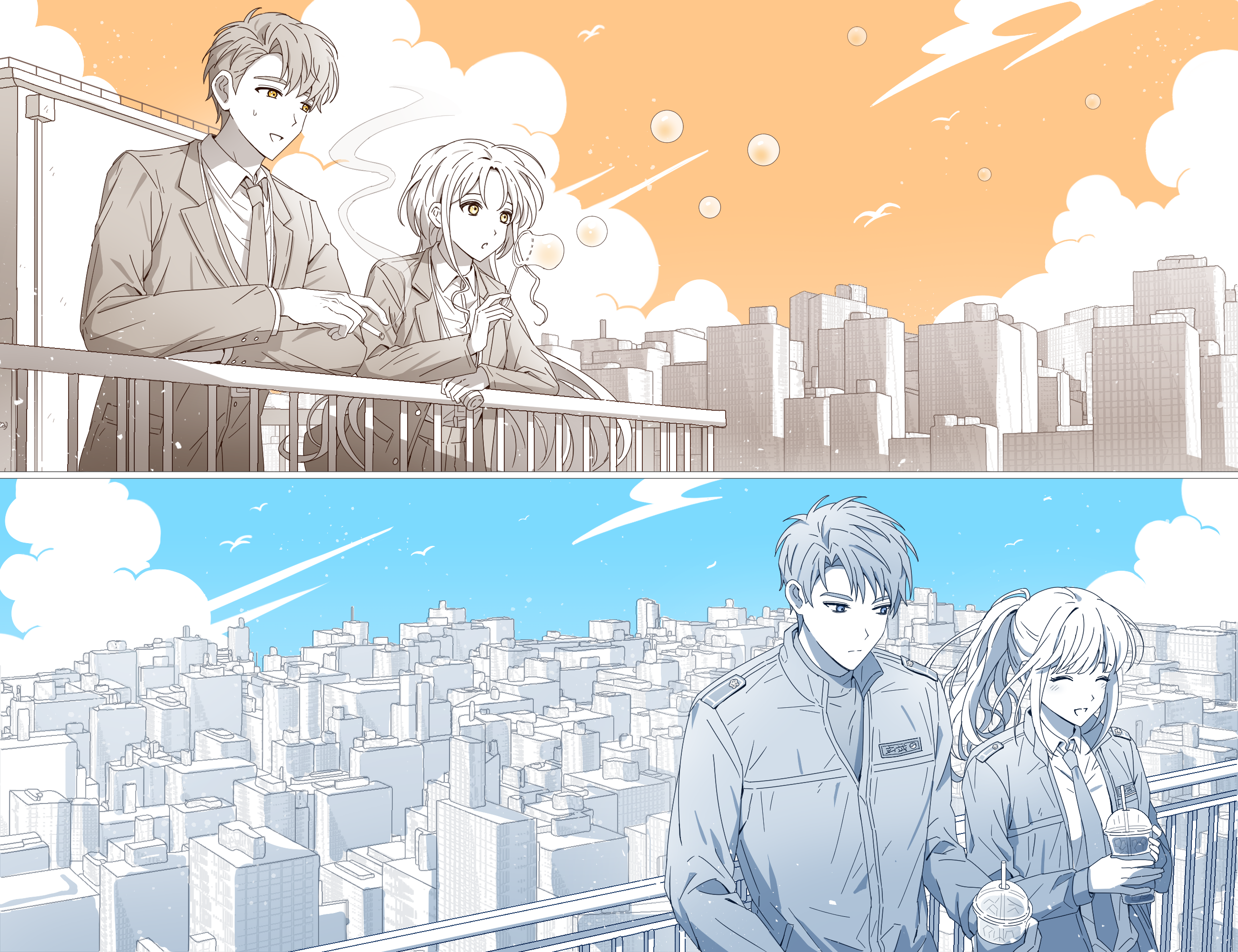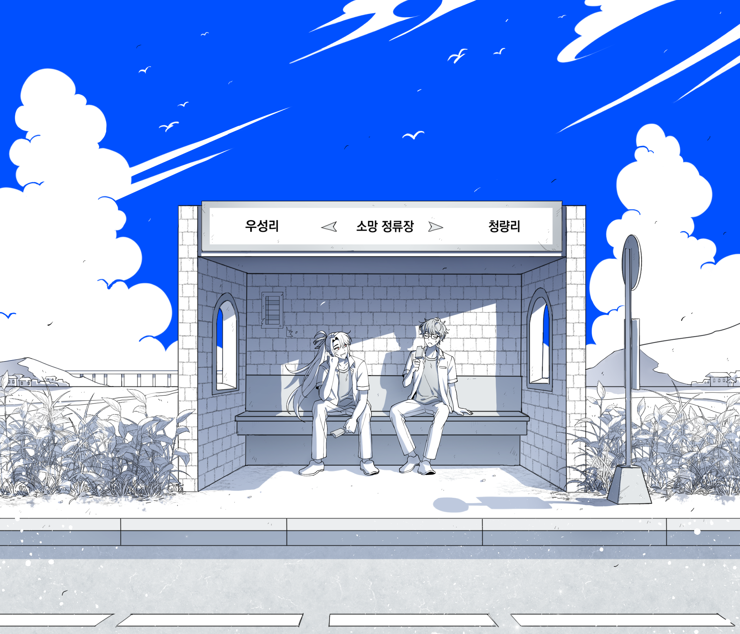 러프한 선화에 간단한 밑색(흑백)과 배경색(단색)이 들어가는 타입입니다.